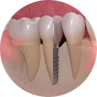 虫歯、歯周病、矯正、外科治療などの総合的見地からインプラント治療が可能です。インプラント治療を行うことで隣の歯の負担が少なくなり、歯が揺れなくなったり、口の中全体に良い効果を及ぼすことができます。そのため、インプラント治療はその他の歯の治療と密接に関連するため、当院ではほかの治療と合わせ複合的な治療判断を行うことができます。