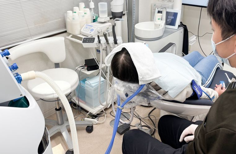 インプラントの治療はなんだか怖そうと考える方も多いと思います。インプラント治療の負担を少しでも少なくするために当院では静脈内鎮静法、笑気吸入鎮静法を行っており、手術の際の負担軽減に努めており、うとうとしながら半分眠っているようなリラックスした状態で治療を行うことができます。